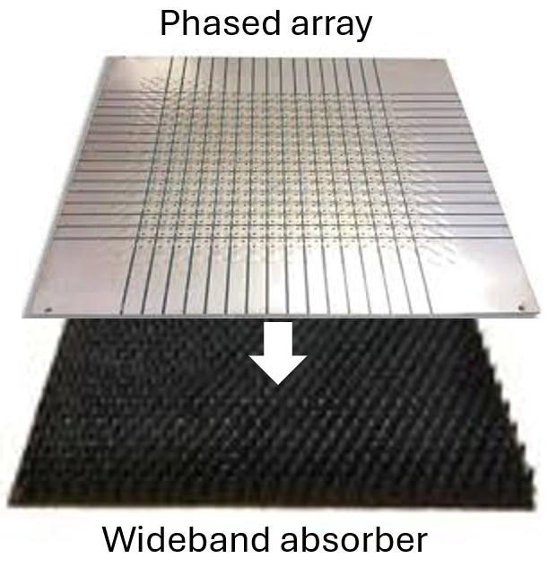 Wideband phased arrays typically use a metallic backing reflector to achieve unidirectional radiation. A key limitation arises at the low-frequency end of the band, due to the small electrical distance from the metal. To extend the bandwidth, the backing reflector may be replaced with a wideband absorber. The presence of the absorber can enable huge operational bandwidths of more than one decade, at the expenses of reduced efficiency.